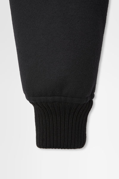 裾と袖口には太めのリブを配し、コンパクトに収まるフォルムを演出している。