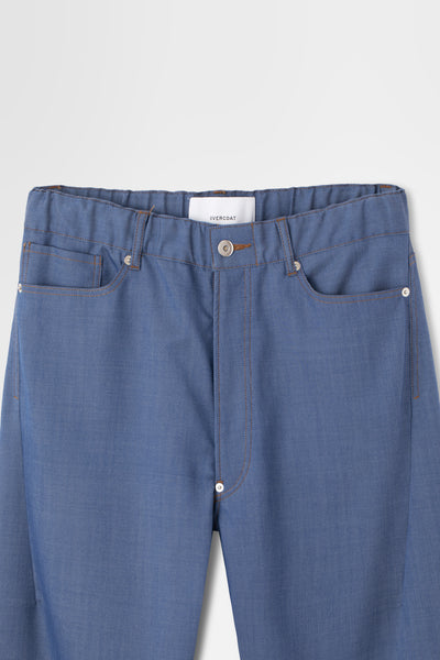 春夏らしい軽やかなウールデニム素材で仕立てた新型パンツ。