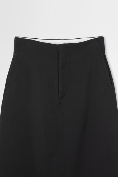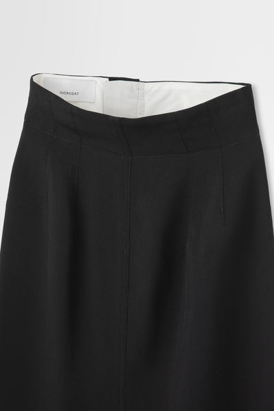 OVERCOAT定番のトリコチン素材を使用した、ハイウエストのペンシルスカート。背面に深めのスリットが入っており、足捌きも良いナチュラルフィットなアイテム。