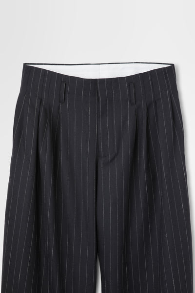 5 Tuck Trouser in Wool Pinstripe