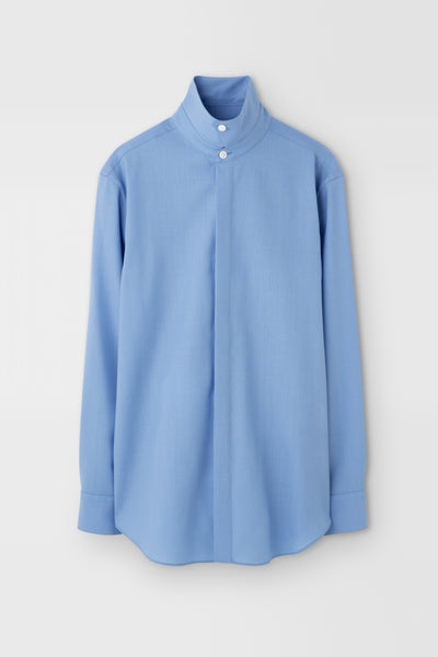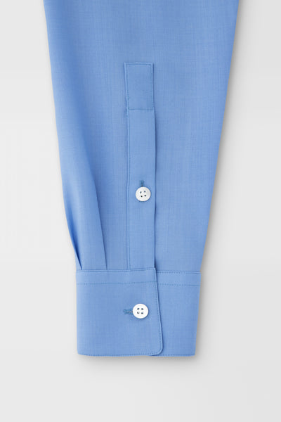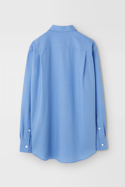 定番のウールシャツ。動きやすさを高める後ヨークの左右に施された2つのタックが特徴。